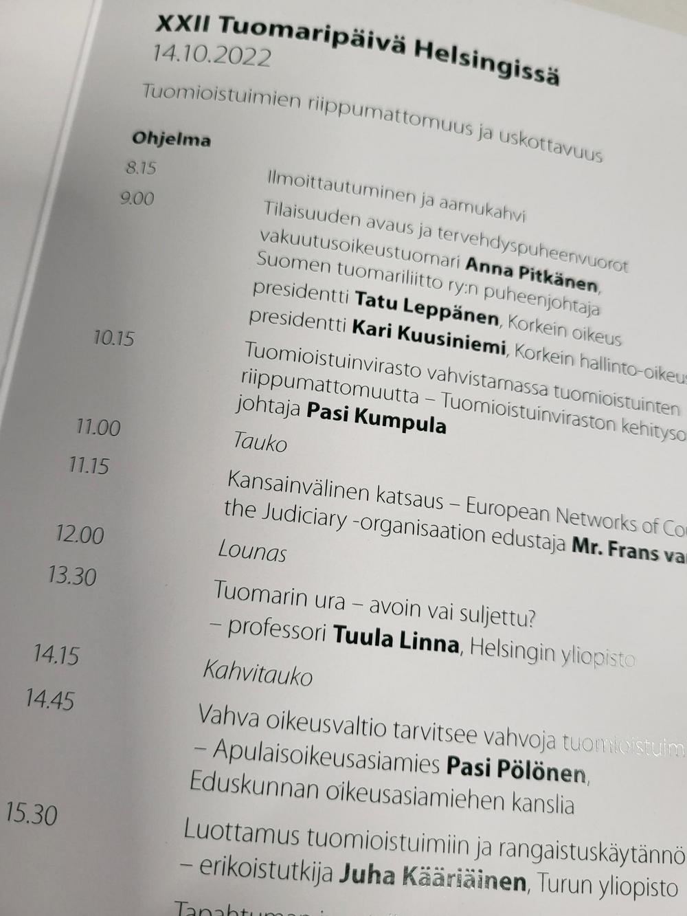 Tuomaripäivän päätemana oli tuomioistuimen riippumattomuus ja uskottavuus. Puheenjohtaja, herastuomari Janne Heilimä edusti tilaisuudessa yhdistystämme kutsuvieraana